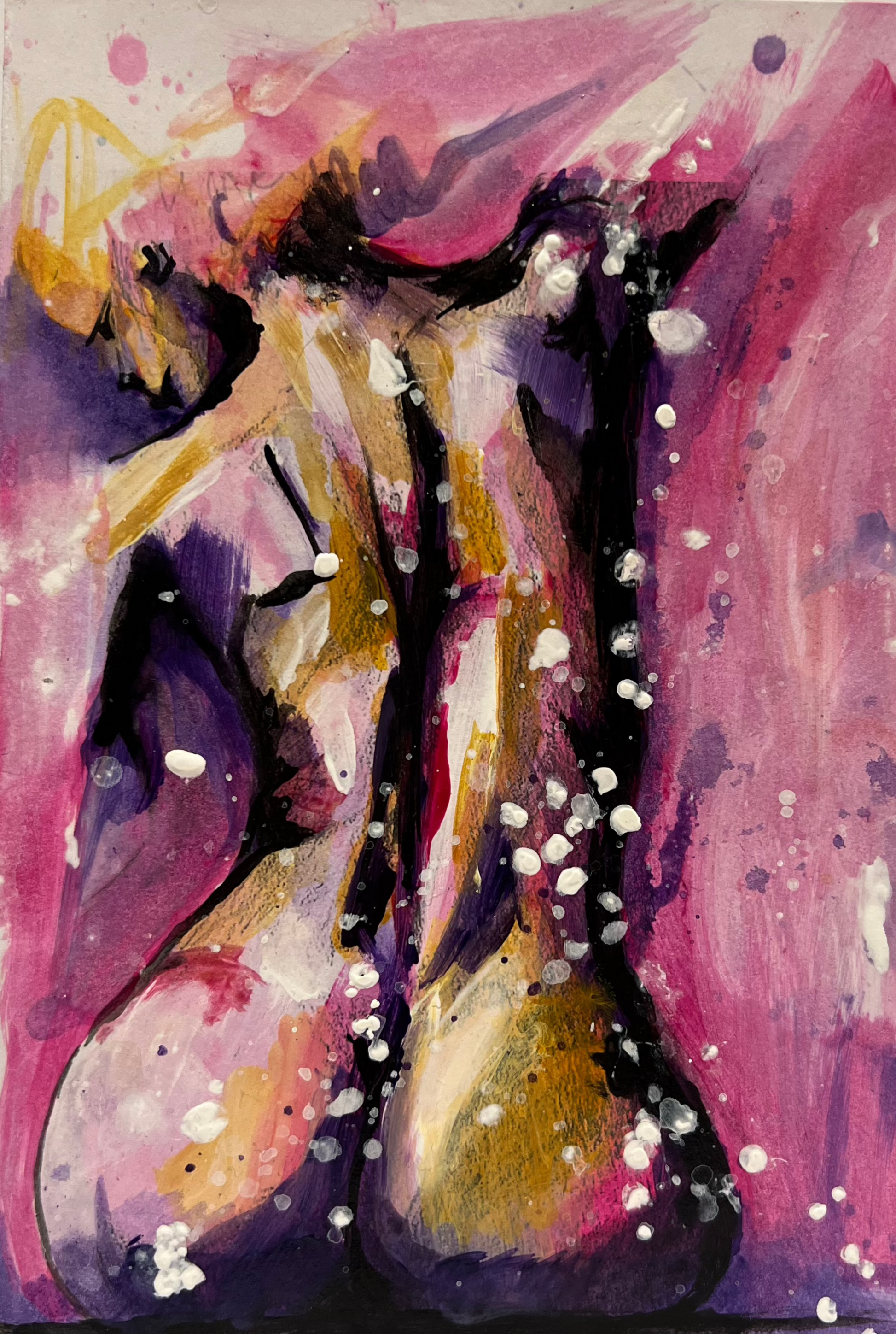 "Hunan Gariad" taps into my Welsh roots, bringing forward the message of self-love. The colours and textures of this unique small artwork embrace imperfection in its natural marks within the figurative subject. Initially created as a greetings card, this layered artwork has a secret message inside especially for her lucky owner.