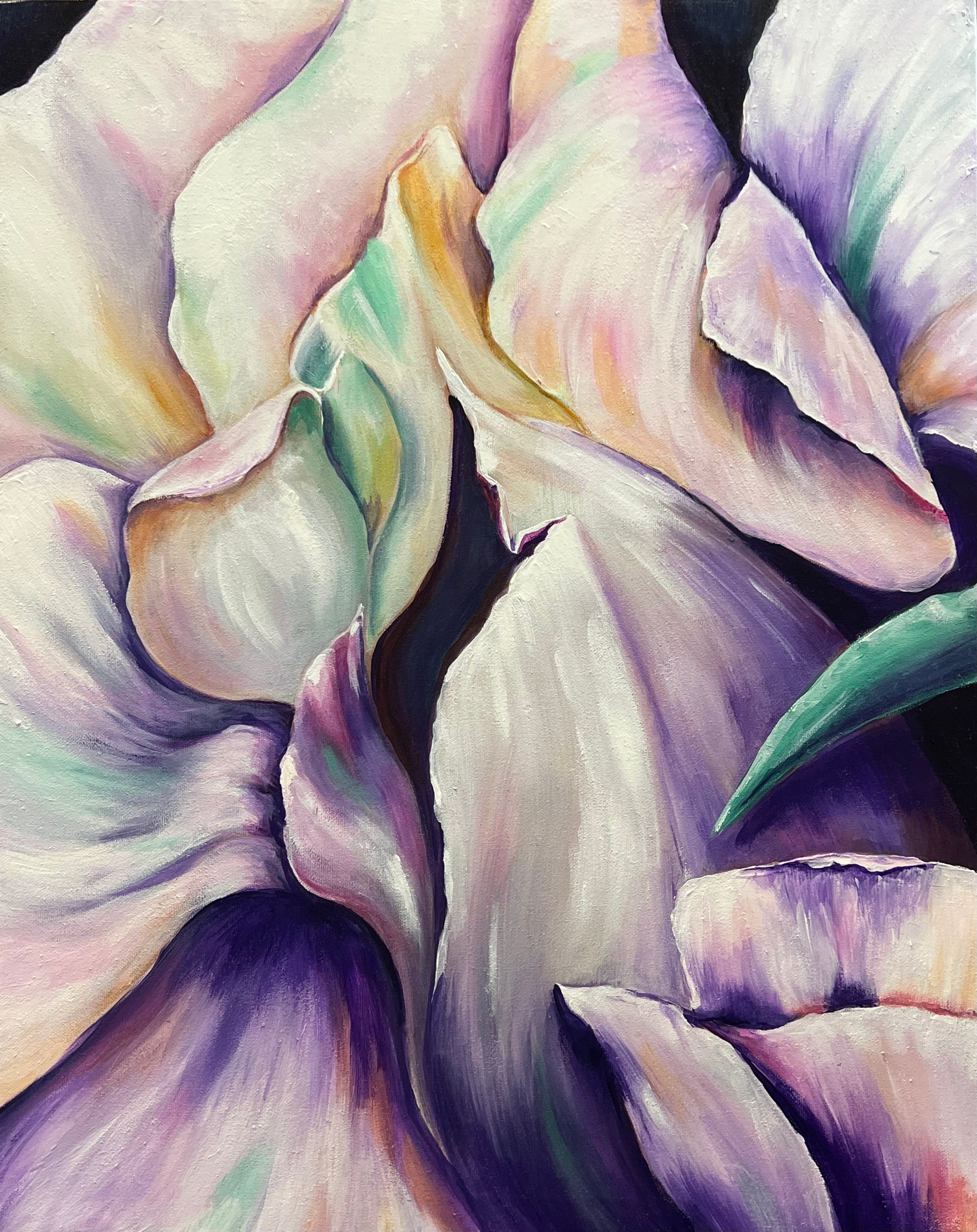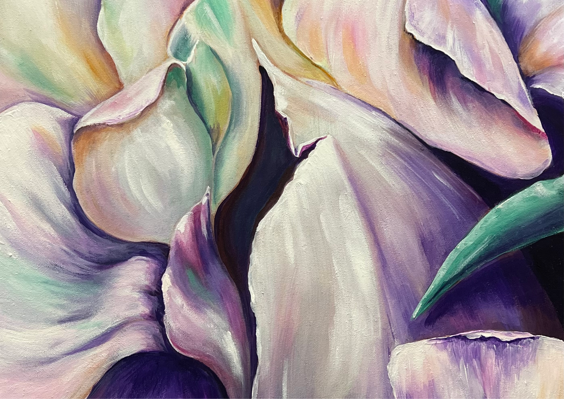 Original acrylic painting on a salvaged, repurposed canvas. Inspired by the shadows left on the original painting, "Summer" came to life like the season itself; full of colour, vibrance and shine. Finished with gold touches to bounce light and create warmth in your space.