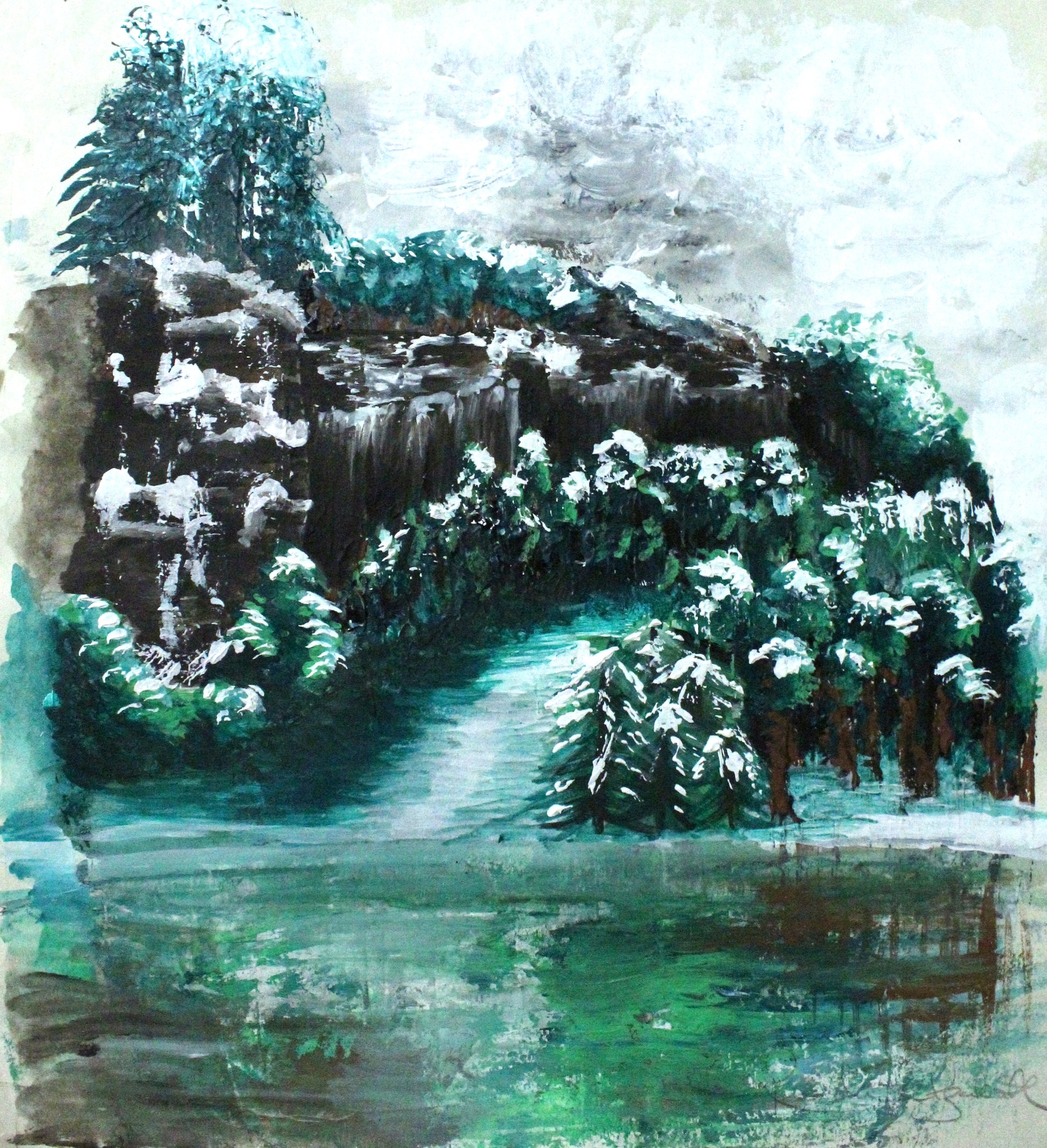 Original acrylic painting on paper. "Mind's Eye" is a painting drawn from imagination, of a place of nature, in beauty and serenity.